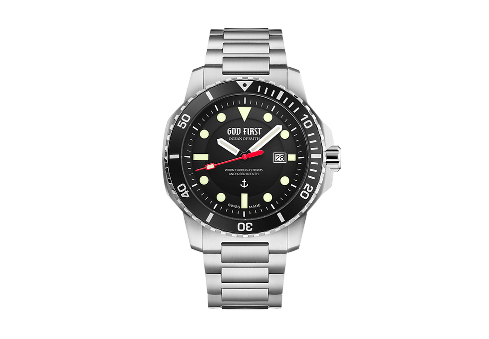 GOD FIRST Uhren erzählen eine biblische Geschichte. Angefangen mit OCEAN OF FAITH, welche die Geschichte von Markus 4:40 erzählt, werden wir in unseren nächsten Modellen ebenfalls Geschichten aus der Bibel wiederspiegeln.